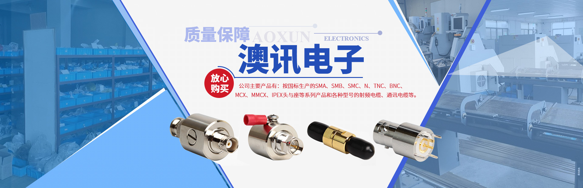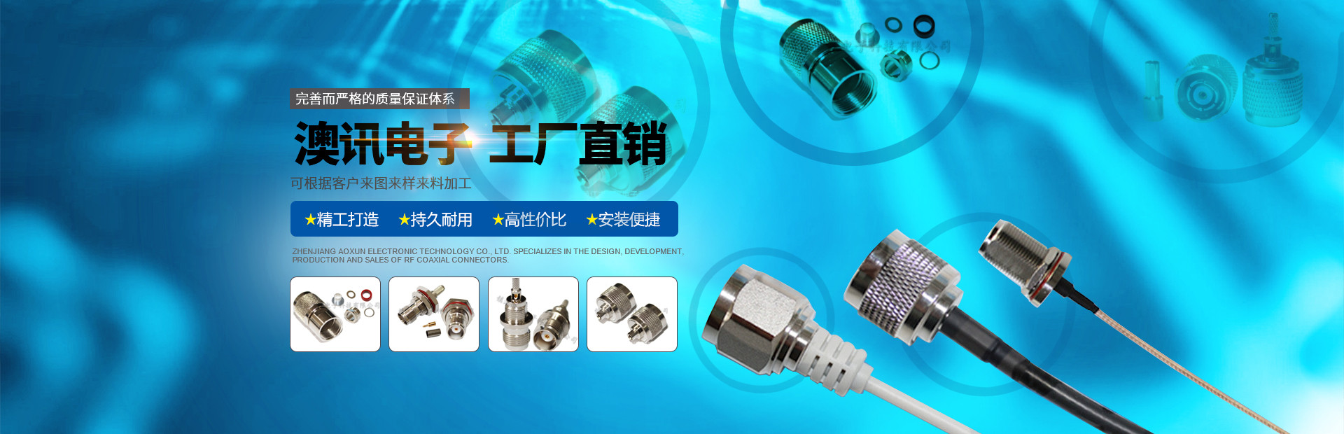 鎮(zhèn)江市澳訊電子科技有限公司,占地面積5000平方米,現(xiàn)有員工近百名,各類技術(shù)人員占15%。我公司專業(yè)從事射頻同軸連接器的設(shè)計、研制、開發(fā)、生產(chǎn)、銷售。